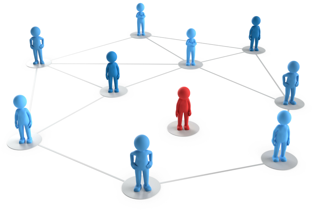 Die rote Figur ist vom Netz der blauen Figuren ausgeschlossen.