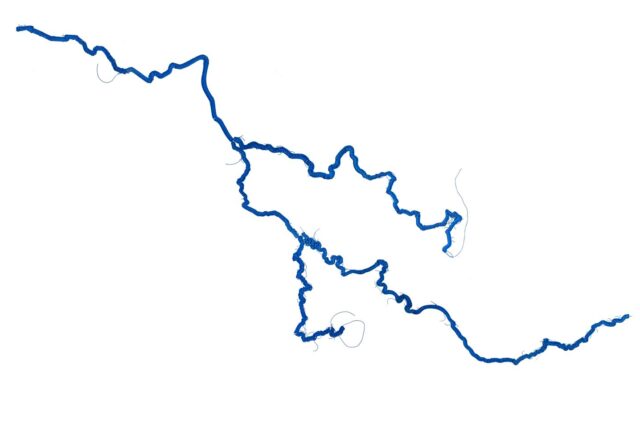 Illustration eines gezeichneten Flussverlaufes mit Nebenarmen.